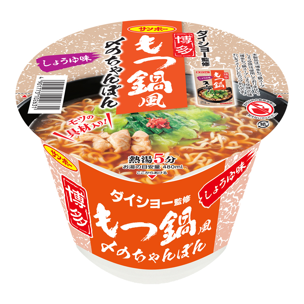 サンポー食品は9月29日、全国で「ダイショー監修 博多もつ鍋風〆のちゃんぽん」(293円)を発売します。
