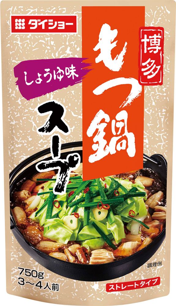 パッケージはダイショー「博多もつ鍋スープ しょうゆ味」のデザインを踏襲し、もつ鍋の〆にちゃんぽんを楽しむシーンをイメージした仕上がりです。