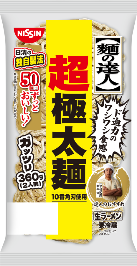 日清食品チルドは10月13日、関東と中部地区でチルド商品「麺の達人 超極太麺」を発売します。内容量360g(2人前)、388円。