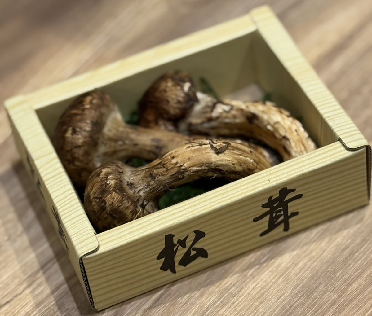 シーズンの最盛期を迎える10月のマツタケ。風味や旨味がもっともよいものを店主が厳選し使用する。香りを抽出するマツタケ油、そしてコリッとした弾力の身も抜群だ。
