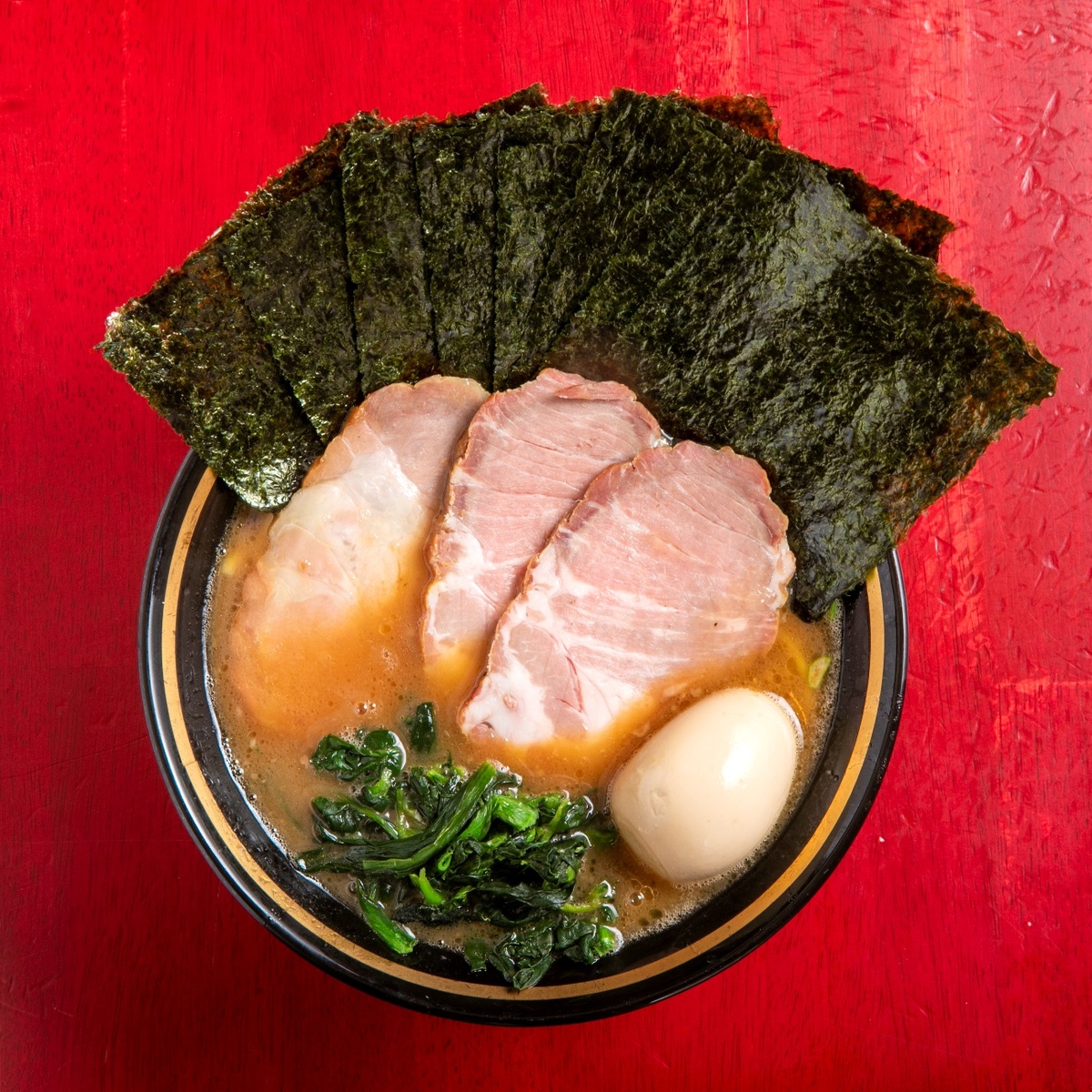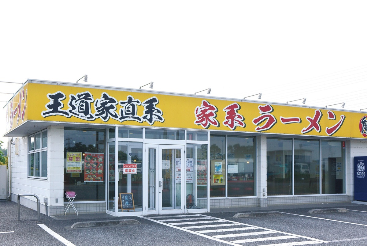 関東鉄道常総線「水海道」駅から約2.2km、常磐自動車道の「谷和原I.C.」からは車で5分ほどの場所にある「家系ラーメン 熊田家」。千葉県柏市にある人気店「王道家」の流れをくむ店で、元祖家系ラーメンの店である吉村家から続く正統派家系ラーメンの店です。