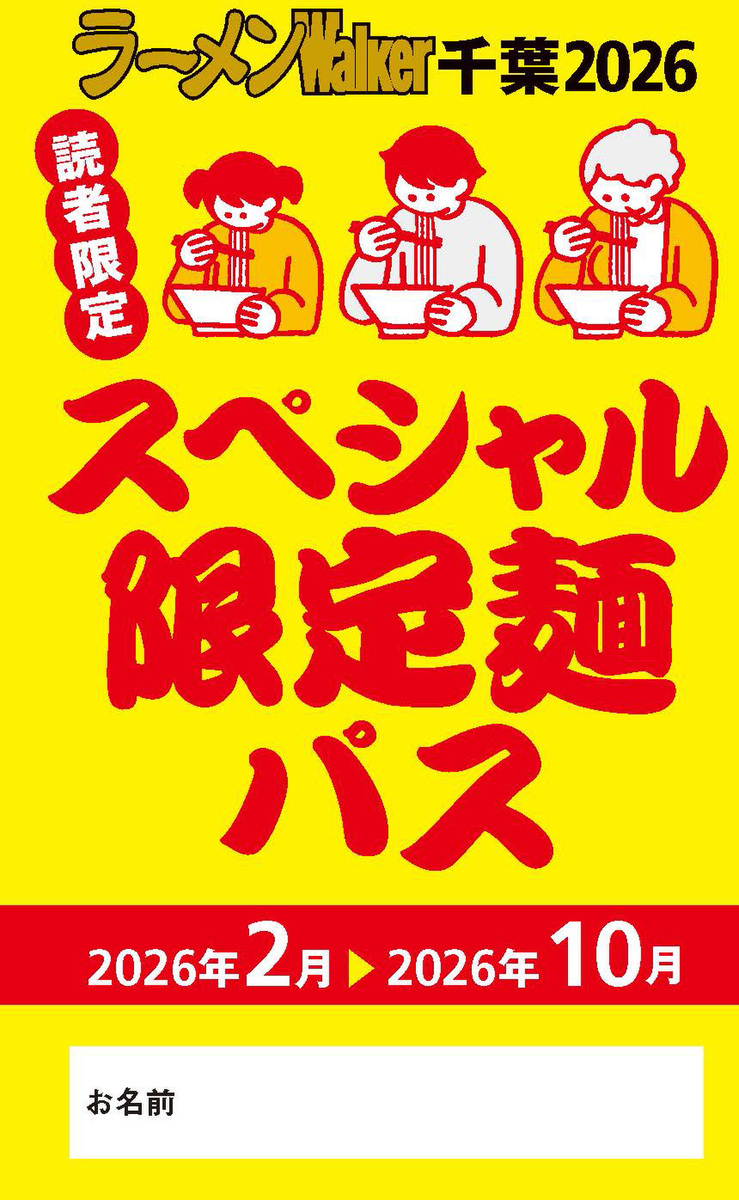※限定麺を食べるには必ず「ラーメンWalker千葉2026」、もしくは雑誌に掲載されている「スペシャル限定麺パス」が必要です。食券購入時または注文時に店舗スタッフに提示してください(1人1冊、電子版不可)