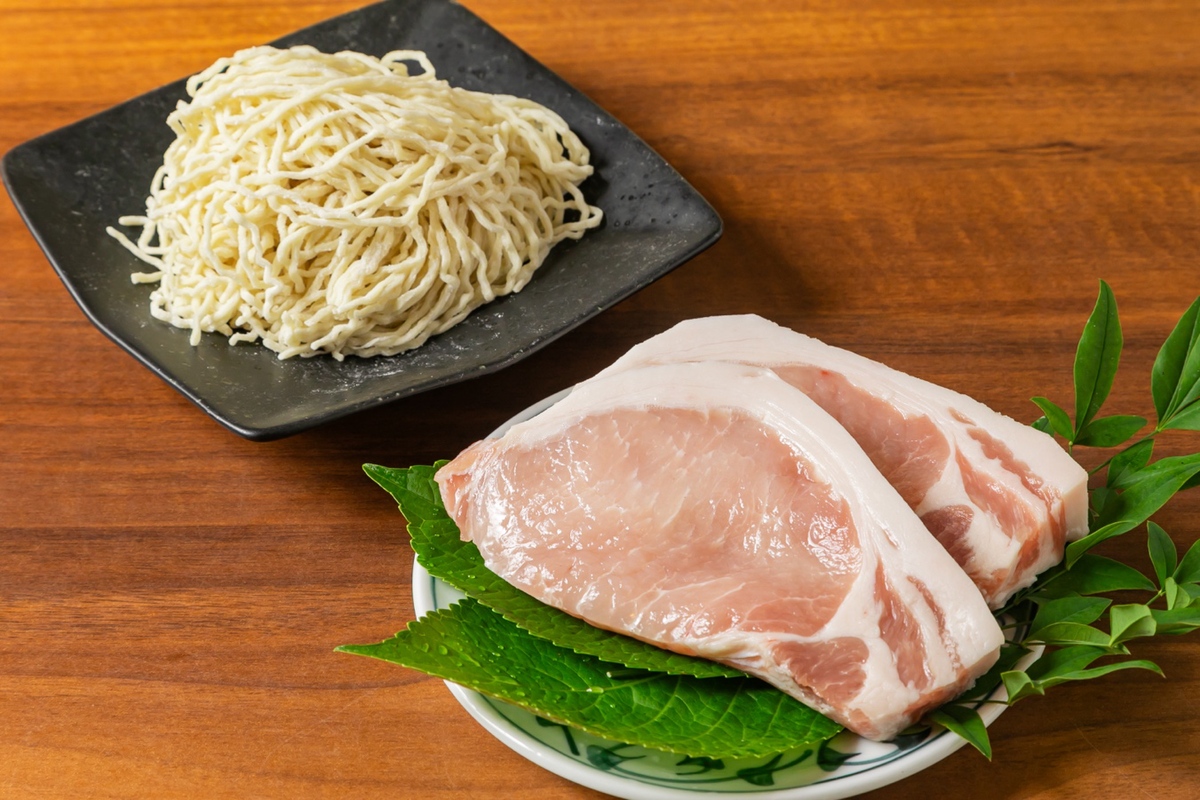 良質な脂肪と豚本来の臭みを抑えて旨味を最大に引き出す麓山高原豚に、県産の小麦粉を使用した特注麺を合わせた。