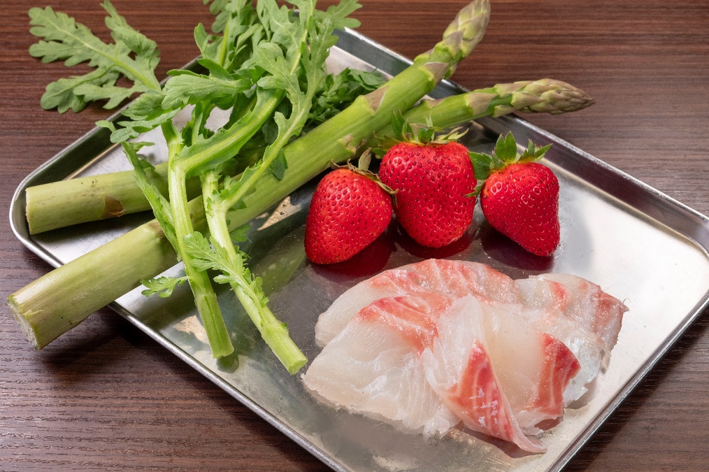 2025年6月に店主の地元の仲町台へ移転した「支那蕎麦屋 藤花」。移転後は全メニューをさらに突き詰めて完成度の高さを見せつけている実力店だが、このスペシャル限定麺でもその技をいかんなく発揮している。今回は旬の食材ということで、使うのは春の食材。桜鯛の刺身やホタテ、ダシで煮る菜の花のおひたし、アスパラなどに甘酸っぱいイチゴソースをかけてマリネ風にする。麺はモチッとした弾力が心地よい自家製麺で、そこに魚介ダシを効かせた塩ダレとホタテ油を加える。春の食材の具材と麺をしっかりとまぜて、春の味わいを存分に堪能できる仕上がりだ。