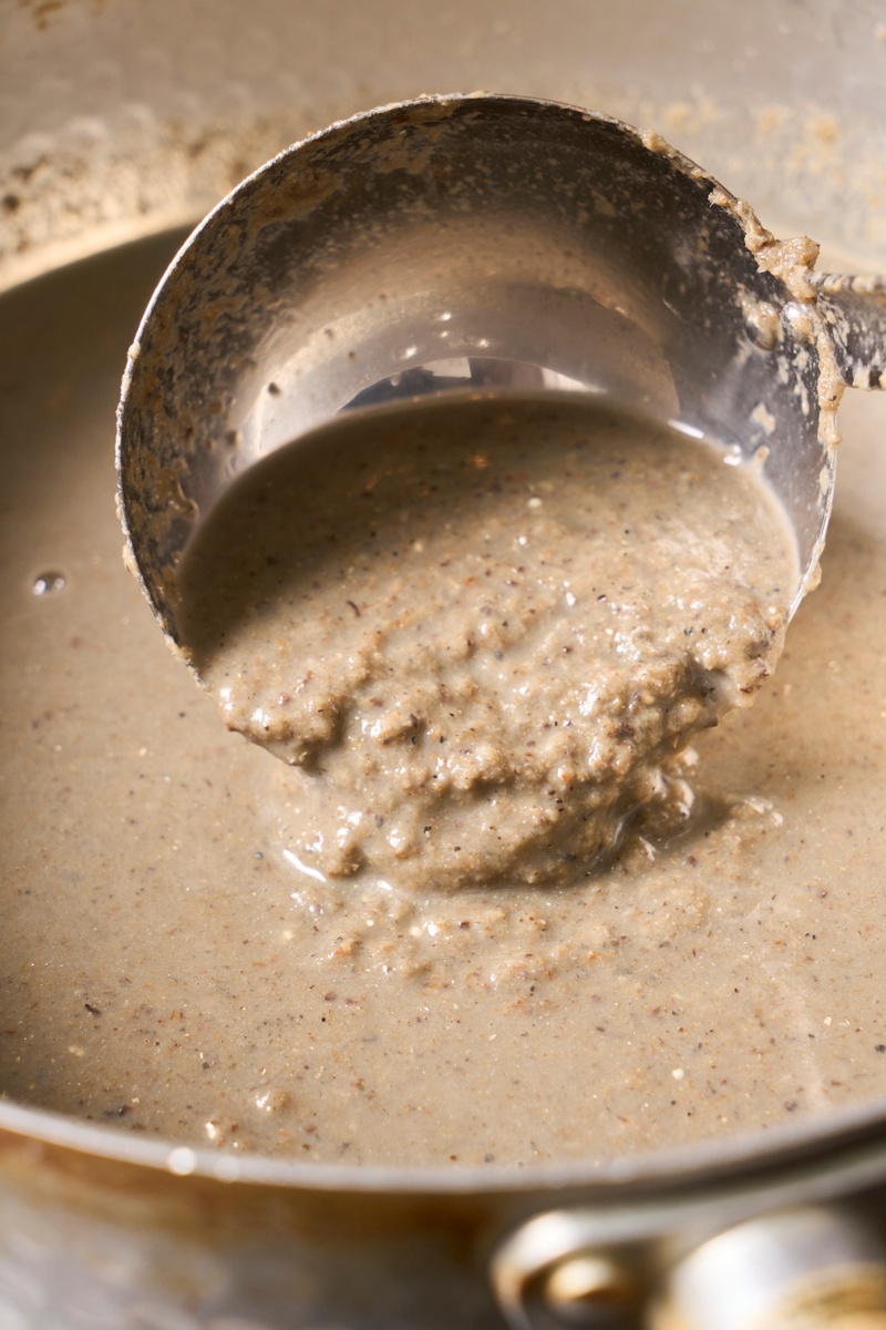 試行錯誤して辿り着いたのは普段の清湯でなく、濁りをもたせたセメント煮干系。いつもは「伊吹いりこ」をたぎらせないようにじっくりとダシを引くのがモットーだが、あえて強火で湯の中をまわすようにイリコを炊き、さらにミキシングして自家製セメント煮干を製作した。