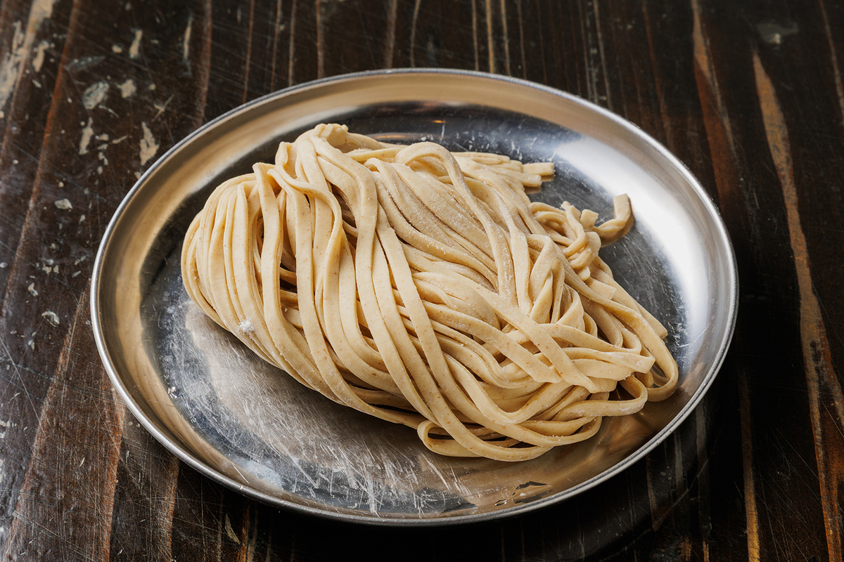 パスタの「フェットチーネ」を思わせる存在感たっぷりの自家製平打ち麺が重厚なスープを持ち上げ、バルメザンチーズのコクと風味が名脇役。「唯一無二」をテーマに掲げる同店らしい、印象的な一杯に仕上げている。
