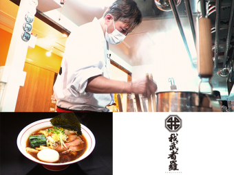 ・我武者羅の背脂煮干スープに、七彩の打ち立て麺を合わせたスペシャルコラボ麺。