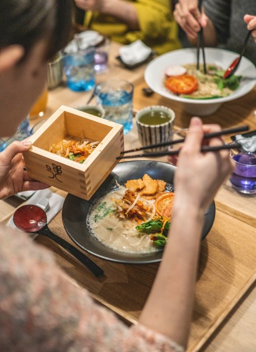 いえ、楽しかったです! 朝から晩までにやにやしながら、ずーっと迷走していましたね。まずは醤油にこだわりたいと思って、動物系だったらいろいろと入れられるけどベジではそれは難しい。清湯系よりもとろみのある白湯系のスープのほうがヨーロッパではなじみがあるので、それは決めて、2年ぐらいいろいろと試作しましたねー。醤油は最終的に、山椒オイルとトリュフオイルをちょっとまぜたもので香り付けして落ち着いたのですが、塩は塩で、また迷走して(笑)。きちんと原価計算をして、スタッフトレーニングのプログラムを作って……。僕らのビジョンをどう伝えようかって話し合い、マネージャーに伝えて……今回は、開店予定日から実際の開店までに10か月はかかりましたね。工事による遅れでしたが、伸びた分、味の改良がさらに進みましたよ。これまでポーランドで十数店舗の立ち上げを手伝ったり見てきましたが、予定日から実際の開店までは、半年から1年程度は大抵遅れます。理由はさまざま。建物の所有者との問題であったり、工事の遅れ、許可の遅れ、業者が来ないなど。日本では当たり前のようなことがそうではないことが多々あります。
